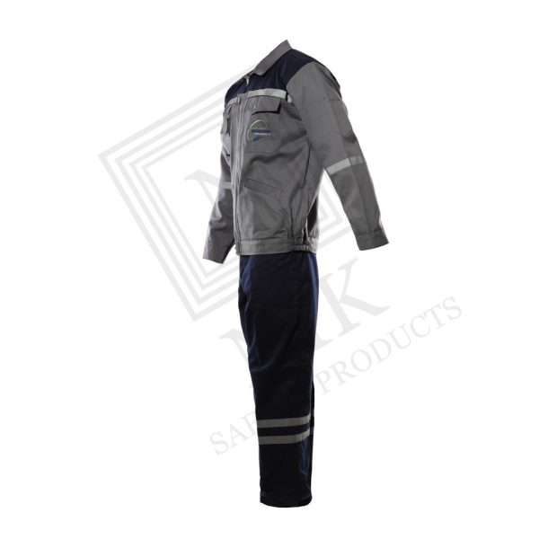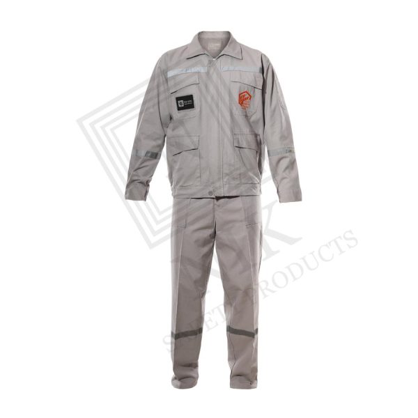 لباس کار دوتکه کتان ترگال 70% پنبه طوسی استخونی شبرنگدار