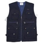 جلیقه خبرنگاری هشت جیب کتان سرمه ای