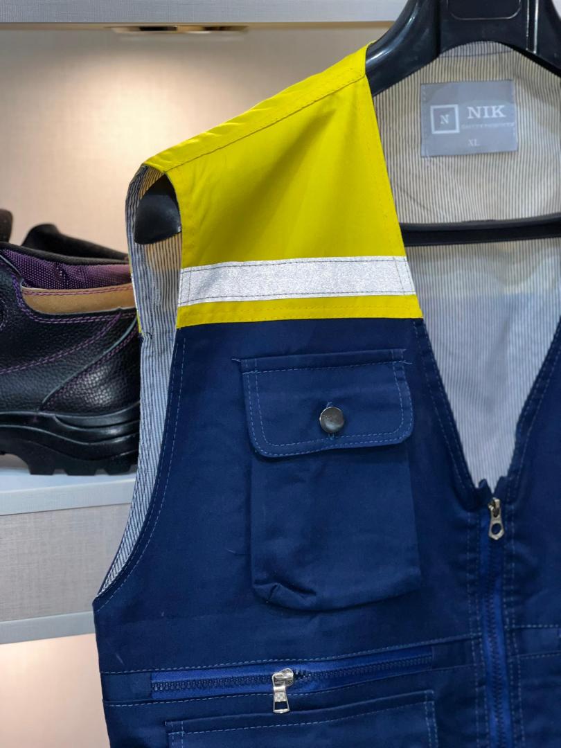 جلیقه خبرنگاری کتان سرشانه زرد شبرنگدار تمام آستر